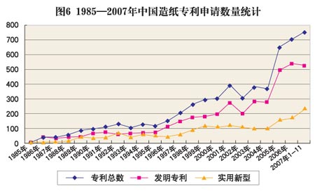 圖8 1985-2007年中國造紙專利申請數(shù)量統(tǒng)計