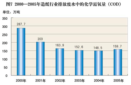 圖9 2000-2005年造紙行業(yè)排放廢水中的化學(xué)需氧量(COD)