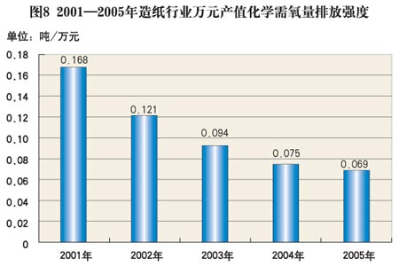 圖10 2001-2005年造紙行業(yè)萬元產(chǎn)值化學(xué)需氧量排放強度