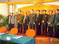 儀式結(jié)束后,南昌市副市長林學(xué)仁、南昌經(jīng)濟技術(shù)開發(fā)區(qū)副主任王建華、江西晨鳴紙業(yè)有限責(zé)任公司董事長周少華在入?yún)^(qū)建設(shè)合同上簽字,并舉杯慶祝雙方簽約成功。(晨鳴集團) |