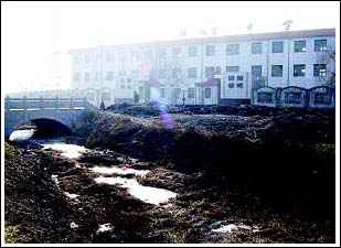 鎬京中學(xué)門(mén)前受到嚴(yán)重污染的太平河。記者李福民攝