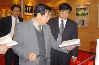 曾曉東在榮譽(yù)展室翻看由華泰專用紙印刷的《江澤民論有中國(guó)特色社會(huì)主義》、《論“三個(gè)代表”》等書籍