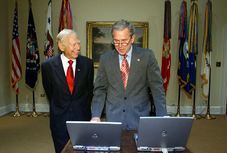 美國總統(tǒng)布什通過計算機(jī)啟動高寶印刷機(jī)
