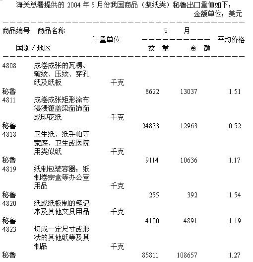 3月份我國商品(漿紙細類)秘魯出口量值表