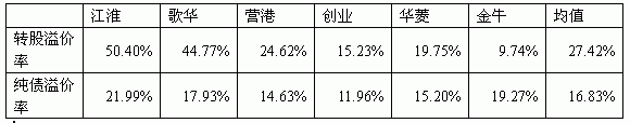 表2、未進入轉股期的轉債轉股溢價與純債溢價水平比較