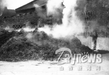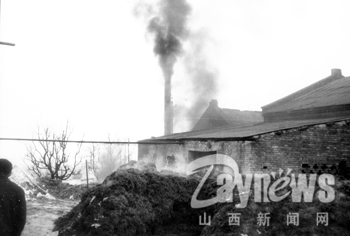 1月9日上午,絳縣氣溫很低,但孫王村附近的一家造紙廠廠房和加工車間卻熱火朝天,工人門正在緊張有序地生產(chǎn),利用年關這段“黃金歲月”狠賺一把。該廠離絳縣縣城不足30公里,下了車向西走約100米,看到路南黃黃的污水正在排放,遠處黑煙滾滾。小張告訴記者,今天肯定生產(chǎn),沿著稠黃的污水往南走去,碰到兩個中年男子正在篩著煤粉。