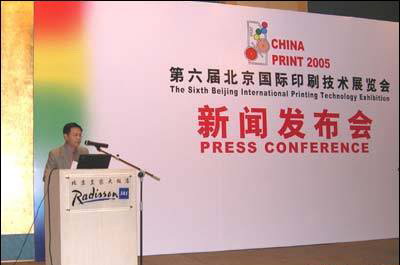 2005年4月22日,“第六屆北京國際印刷技術展覽會新聞發布會”在北京皇家大飯店舉辦。中國印刷及設備器材工業協會常務副理事長王德茂、秘書長許錦楓、北京華港展覽有限公司副總經理彭慶芝等業內人士,上海電氣集團、北大方正和北人集團等企業領導以及多家業業媒體參加。 中國印協秘書長許錦楓介紹了China Print 2005展會的進展情況及展會期間的各項安排,總結了本次展會的優勢和特點,介紹了展會的活動、宣傳報道和服務等情況。北京華港展覽有限公司銷售部副總經理趙暉介紹了展會情況、參展情況、展會特點、展會宣傳、展會配套活動和現場服務等六個方面具體情況。隨后上海電氣印刷包裝機械有限公司的常務副總經理戴園倫、北京北大方正集團公司IT軟件事業部公關市場副總監李蓉、北人集團代表周嵐楠經理分別介紹了公司近況、最新產品。最后王德茂副理事長做了總結并希望此次展會能夠圓滿成功。