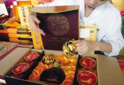 而2003年中秋節(jié),國(guó)內(nèi)更曾有標(biāo)價(jià)31萬(wàn)元的“中秋月餅加住房”;2004年中秋節(jié)曾有賣價(jià)18萬(wàn)元、內(nèi)含一件純金金佛的月餅禮盒。此外,內(nèi)有高檔洋酒、高檔茶葉以及鍍金刀叉等物品的高檔月餅禮盒比比皆是。