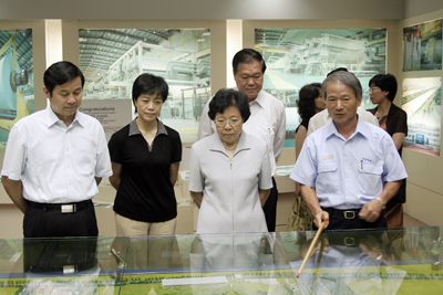 在會議室里,黃志源總裁發(fā)表了熱情洋溢的致詞,他簡短介紹了金光集團(tuán)尤其是金東的基本情況,著重談到了金東的生產(chǎn)、管理、文化,同時,黃總裁對陳主任和國務(wù)院僑辦給予金光集團(tuán)的幫助與支持表示了衷心的感謝。聽取匯報(bào)后,陳主任大加贊賞了金光集團(tuán)的“林漿紙一體化”的循環(huán)經(jīng)濟(jì)道路,贊揚(yáng)了金東對環(huán)保、對地方經(jīng)濟(jì)所做得貢獻(xiàn)。同時她指出,前段時間,APP遭遇到一些困擾,對此,我們要辯證的看待,要化壓力為動力。