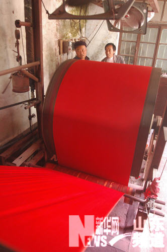 新華網山東頻道11月2日電 被譽為“魯南紅紙第一村”的山東省郯城縣勝利鄉沙沃村,刷制紅紙已有300多年的歷史,全村571戶曾家家染缸紅,戶戶紙兒響。去年初,當地政府因勢利導,協調信用社資金扶持,成立了12家紅紙公司擴大生產規摸。目前,全村年生產紅紙3000余萬張,銷售額達820多萬元,暢銷 河南、江蘇、安徽等20多個省市,僅此一項人均增收1700元,成為遠近聞名的富裕村。(房德華 杜明函 攝)