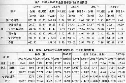 據(jù)中國(guó)新聞出版報(bào)報(bào)道的有關(guān)信息表明,2003年全國(guó)圖書(shū)、期刊和報(bào)紙的出版、發(fā)行、銷售仍然保持著持續(xù)穩(wěn)定上升的勢(shì)頭。2003年全國(guó)出版圖書(shū)19.04萬(wàn)種,同比增長(zhǎng)11.41%。其中新版圖書(shū)11.08萬(wàn)種、占58.19%,總印數(shù)66.7億冊(cè)、同比增長(zhǎng)-2.91%,總印張462.22億印張、同比增長(zhǎng)1.26%,折合用紙量108.77萬(wàn)噸、同比增長(zhǎng)1.25%。