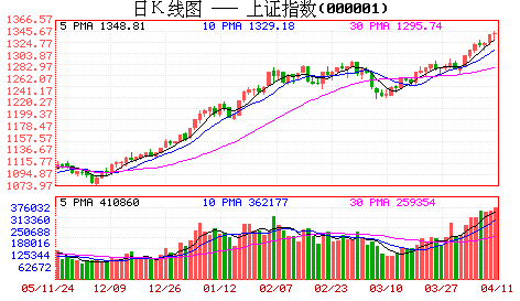 今日上海綜合指數(資訊 行情 論壇)開盤1360.98點,最高1366.52點,最低1350.33點,收盤1362.23點,上漲3.14點,漲幅0.23%,成交227.54億元;深圳成份指數開盤3744.56點,最高3792.84點,最低3716.99點,收盤3780.07點,上漲44.81點,漲幅1.20%,成交150.92億元。B股指數方面,滬市B股收盤93.27點,下跌0.57點;深市B股收盤2346.13點,上漲49.52點。新綜指今日也再創新高,收出一根帶上下影的小陽線,收于1154.53點,最高創出1159.61點。