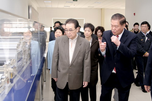 4月28日,原中共中央政治局常委、全國(guó)人大常委會(huì)委員長(zhǎng)李鵬同志一行在江蘇省委副書(shū)記張連珍、鎮(zhèn)江市委書(shū)記史和平、市長(zhǎng)許津榮的陪同下,蒞臨金東視察。