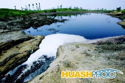 造紙廢水未經處理偷排入沙漠中形成“黑湖”