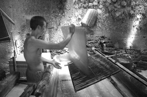 紙棚的生活是單調(diào)寂寞的,從早稻收割后開始進(jìn)山做紙,連續(xù)數(shù)月他們很少回家,食物都由家人送來,做好的成品紙也由家人挑出山。
