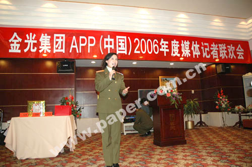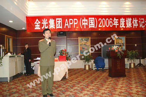 為了感謝一年來各大媒體對金光集團(tuán)APP林漿紙一體化循環(huán)經(jīng)濟(jì)模式的理解和支持,2007年1月23日晚,金光集團(tuán)APP(中國)在北京娃哈哈大酒店怡和廳舉辦了2006年度媒體記者聯(lián)歡會,筆者有幸被邀請參加了此次活動。