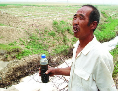瓶子里裝的,就是新關紙業公司排出來的造紙廢水。深褐色的污水散發著惡臭,拖著白沫,浩浩蕩蕩地在洛惠渠東一干渠里流淌。