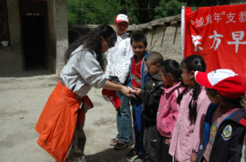 為了給孩子們一個驚喜,志愿者們為老師和孩子們準備了書包、鉛筆、作業簿等文具以及帽子、T恤等衣物。當孩子們接過志愿者手中的書包時,那驚喜而羞澀的神情總是令人那么的難忘。