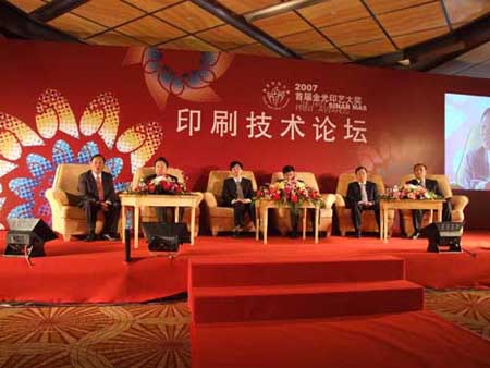在頒獎典禮前,組委會精心組織了印刷技術(shù)論壇,來自金東紙業(yè)、海德堡、東洋油墨、雅昌企業(yè)集團、中華商務(wù)、武漢大學(xué)的6位專家以沙龍的形式與印刷企業(yè)進行了親切、輕松的交流,共同探討了中國印刷業(yè)的環(huán)保責(zé)任、中國印刷業(yè)的前景等問題。