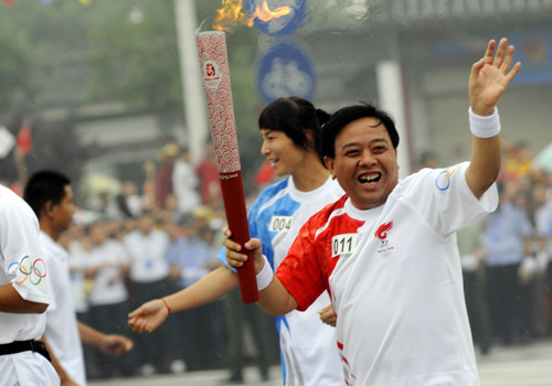 8點(diǎn)14分,北京奧運(yùn)火炬接力曲阜站傳遞活動(dòng)正式開(kāi)始,100名火炬手在儒家文化發(fā)祥地——孔子故里傳遞“更快、更高、更強(qiáng)”的奧林匹克夢(mèng)想。公司董事長(zhǎng)李洪信傳遞11棒,在火炬?zhèn)鬟f中李洪信接受中央電視臺(tái)采訪,他說(shuō),能夠成為火炬手感到無(wú)比幸福和自豪,這是7000多太陽(yáng)人的光榮,也是兗州市58萬(wàn)人民的光榮。太陽(yáng)紙業(yè)500名職工在奧運(yùn)圣火傳遞現(xiàn)場(chǎng)為董事長(zhǎng)李洪信吶喊、助威、加油。