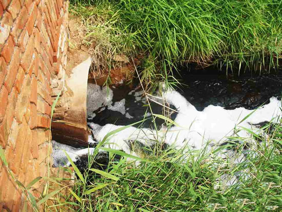 沙王村一村民帶著記者找到了被污染的河水。據(jù)悉,當(dāng)?shù)厝税言摵臃Q之為“人工渠”,主要是為了防洪、抗旱時灌溉使用的。村民告訴記者,自宏光造紙廠開始生產(chǎn)之日起,這條人工渠就改變了它原有的使用用途,變成了今天讓人難以忍受的臭水溝。