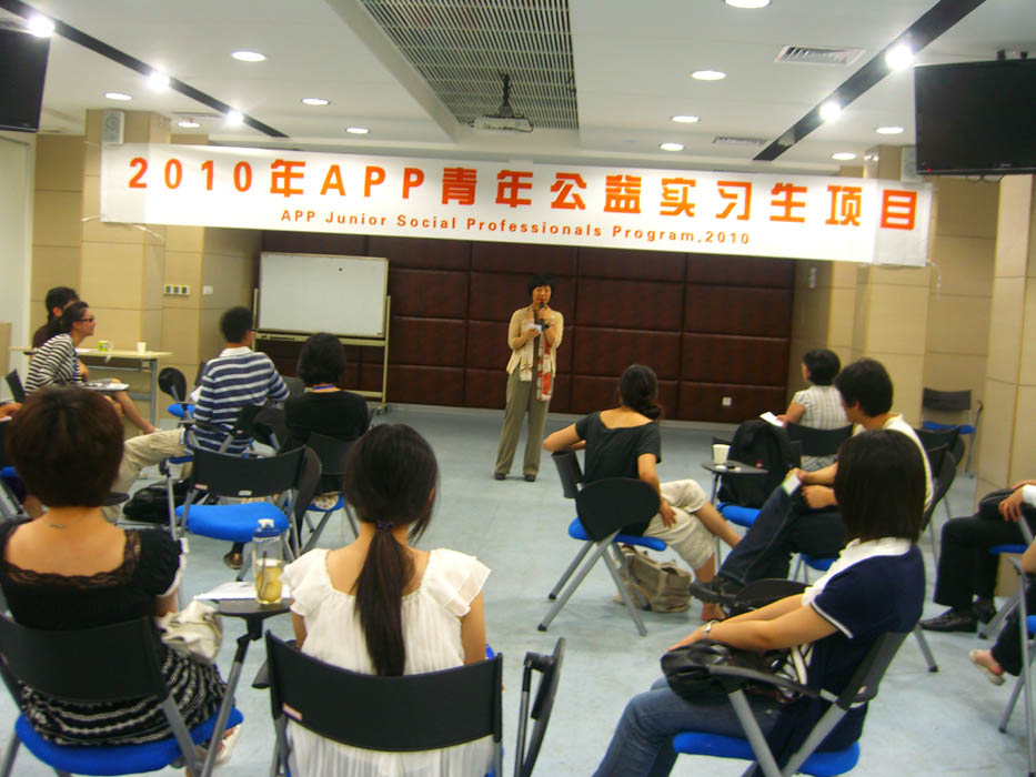 2010年6月18日下午,十二鄰的王俊曉老師為10名入圍大學(xué)生做了一場(chǎng)精彩的公益培訓(xùn)。在之后的“APP青年公益實(shí)習(xí)生”啟動(dòng)儀式上,NGO的各位領(lǐng)導(dǎo)們宣布了最終公益實(shí)習(xí)生的名單,金光紙業(yè)APP(中國(guó))及黃奕聰慈善基金會(huì)的秘書長(zhǎng)蘇薔華小姐特別為此送上祝福。