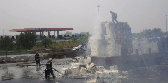 4月13日訊 今天上午,在申嘉湖高速公路上,一輛運(yùn)載40噸左右木漿的半掛車行駛中突然火起,司機(jī)第一時(shí)間發(fā)現(xiàn)后,先是將車緊急停靠硬路肩,對(duì)起火處進(jìn)行了撲救,并報(bào)了火警,而后火速驅(qū)車前往12公里外的高速公路服務(wù)區(qū)。幾分鐘后,當(dāng)該車駛進(jìn)服務(wù)區(qū)時(shí),車上的木漿已經(jīng)是濃煙滾滾,隨后高速服務(wù)區(qū)保安以及高速交警紛紛投入到滅火救援中,直至消防隊(duì)員趕到。雖然,40噸木漿最終被付之一炬,但人無礙。