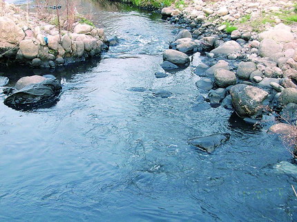 被紙廠污染成墨汁一般的潘溪河