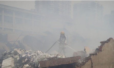 據知情者說,發現起火時,倉庫里沒人,可能是外邊明火竄入倉庫引燃大火。群眾發現失火報警后,有5輛消防車趕到搶險。當時火勢在庫房內迅速蔓延,濃煙滾滾,無法施救,只能動用挖土機將倉庫鐵皮頂棚掀開,然后又把磚混墻體推倒。他們忙活了近3個小時,才將大火撲滅。