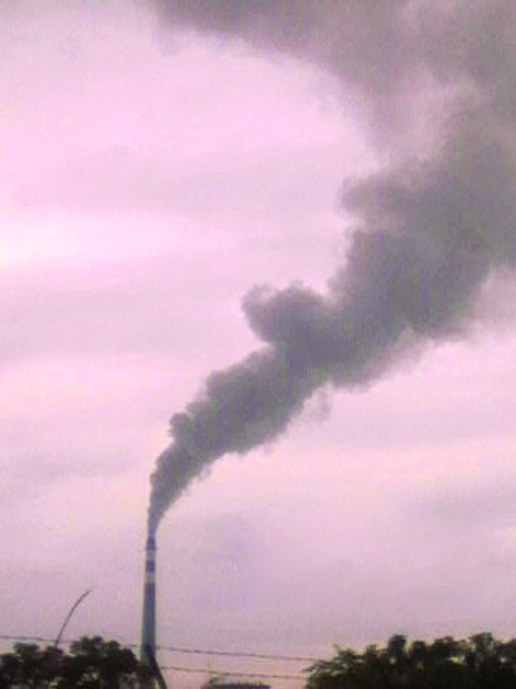 報料人用手機拍攝的玖龍紙業煙囪冒煙圖