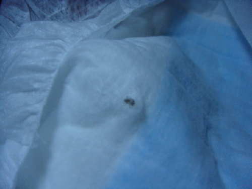 網友原文稱:“我是江蘇人,我們家寶寶現在已經9個多月了,一直都用的媽咪寶貝這個牌子,身邊的好多朋友也在用。一直都覺得很不錯,可是今天給寶寶換尿褲的時候,隨手拿出來的一片尿不濕卻嚇了我一大跳!來的時候,我看到一個小黑點,以為是一個小線頭 或者什么的 ,想隨手拈掉的,結果扯了半天沒扯出來。我仔細一看才發現那個小黑點是鑲在尿布里面的,扯了半天也沒扯出來。后來拿到陽光下一看才發現是一只小蟲子的實體,還有一對翅膀。(有句話怎么說來著?有翅膀的不一定是天使,也可能是死蟲子!氣憤!)尿布已經用了大半袋了,我是在我們這的蘇果超市買的(江蘇的朋友可能都知道這個超市,也算是個連鎖大超市了),所以排除了假貨的可能。年前買的,又沒有保存小票的習慣,這個虧只能自己吃了!(娜娜/文)”