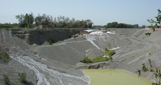 圖為大破城村五隊的大沙坑,坑里的水是米東區新發衛生紙廠和姚祥超造紙廠所排放的污水。