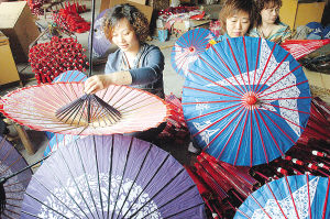 “紙傘在日本市場銷路極好,但企業加工能力有限,許多訂單只能放棄。”在建甌市西大街的帆達工藝廠內,廠長鄒小玲道出了苦衷。1986年,她走上工作崗位之初,就開始與紙傘打交道。2003年,她自己辦廠經營紙傘產品,但由于生產中困難重重,產量從原先的年產12萬把,降到現在的3萬把。