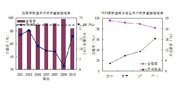 中國產品質量協會有關負責人說,全國范圍內紙巾紙質量波動較大,2010年抽檢質量合格率為83.87%,比2009年約下降了15%。紙巾紙平均質量合格率為88.19%,產品質量還有待提高。各地區紙巾紙產品質量有一定差距,2010年遼寧省紙巾紙質量合格率達到了95.7%,而廣東省僅為81.6%。其原因與抽檢產品種類、數量和檢測精度等有關。