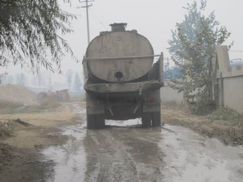 村民說,存儲污泥的坑渠就在大冊營污水處理廠西側,每天都有多輛運輸污泥的罐車從大冊營鎮造紙廠門前經過。路都被運輸污泥的罐車碾壓壞了,行人根本無法行走。