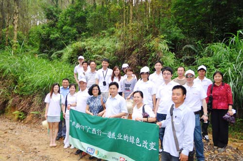 造紙業的綠色改變活動于7月9日-11日在廣西舉行,旨在傳播綠色環保理念,以最佳實踐影響更多人士關注、參與和見證中國紙業的綠色改變。氣候組織、全球環境研究所、達爾文自然求知社以及熱心環保事業的諸多志愿者們共同踏上了“綠腳印”之路。觀察員們在廣西林業專家的陪同指導下,對廣西的人工林經營、環保制漿、社會反響等課題進行實地考察與調研。作為此次活動的合作伙伴,APP(中國)及廣西金桂漿紙也參與其中,與《財經》雜志共同見證“林漿紙一體化”的實踐如何帶動造紙產業從困境走向成功的綠色改變。