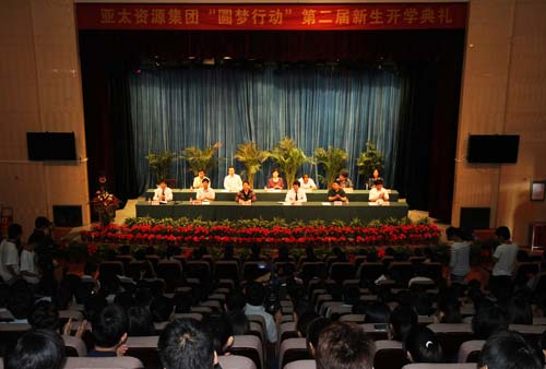 9月17日上午,亞太資源集團(tuán)“圓夢(mèng)行動(dòng)”2012級(jí)開學(xué)典禮在曲阜師范大學(xué)日照校區(qū)舉行。日照市相關(guān)部門、南京林業(yè)大學(xué)、山東曲阜師范大學(xué)、新加坡金鷹集團(tuán)、亞太資源集團(tuán)、山東亞太森博漿紙有限公司的領(lǐng)導(dǎo)與嘉賓以及“圓夢(mèng)行動(dòng)”2012級(jí)80名學(xué)生出席了典禮。