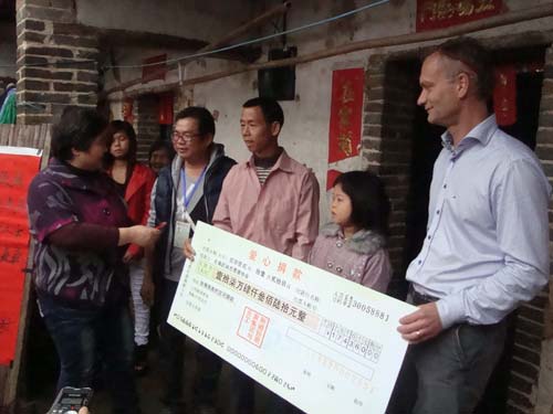 11月30日上午,蒙蒙細雨中,在廣西北海市常樂鎮(zhèn)大教村一戶簡陋的農家小屋門口,舉行了一場特別的捐贈儀式。這里沒有明星,也沒有繁冗復雜的過程,只有捐贈方代表、受捐者家庭和牽線見證者相聚的平實場面。斯道拉恩索員工代表以及北海民間志愿者協會的志愿者一行人為身患突發(fā)性血小板減少癥的13歲女童符艷艷(化名)帶來了好消息:斯道拉恩索集團與員工自發(fā)募集了17萬元多人民幣,將通過北海民間志愿者協會,全部定向捐贈給她作為疾病治療經費。