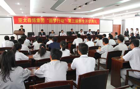 “圓夢行動”自2011年啟動,今年是第三期招生。在所有報(bào)考日照職業(yè)技術(shù)學(xué)院并被錄取的新生中,經(jīng)過嚴(yán)格的篩選,最終有46名品學(xué)兼優(yōu)的學(xué)子符合要求,被錄取到日照職業(yè)技術(shù)學(xué)院工商管理學(xué)院制漿造紙定向委培班。該班課程由日照職業(yè)技術(shù)學(xué)院、南京林業(yè)大學(xué)和亞太森博培訓(xùn)中心共同編制,學(xué)制三年,畢業(yè)后由日照職業(yè)技術(shù)學(xué)院頒發(fā)畢業(yè)證書,由亞太森博集團(tuán)安排就業(yè)。學(xué)生學(xué)習(xí)期間所有費(fèi)用均由亞太森博集團(tuán)承擔(dān),并每月給予生活補(bǔ)助,工作后薪資待遇不低于同期新就業(yè)本科生。這既解決了部分困難學(xué)生的家庭負(fù)擔(dān),也為他們提前解決了工作問題,讓他們無后顧之憂。