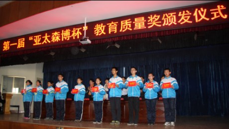 為了支持中國僑聯(lián)倡導(dǎo)的“僑愛心工程”,亞太森博的主要投資人、新加坡金鷹集團(tuán)主席陳江和先生在2004年3月向中國華僑經(jīng)濟(jì)文化基金會捐資設(shè)立“陳金榮文教專項(xiàng)基金”,用于支持中國文教事業(yè)。為了回報社會,彰顯社會責(zé)任,在市僑聯(lián)和企業(yè)的共同努力下,該公司專門從該基金中申請了部分款項(xiàng),針對日照開發(fā)區(qū)中學(xué)、連云港路小學(xué)、蘭州路小學(xué)三所學(xué)校的優(yōu)秀教師、學(xué)生予以獎勵。