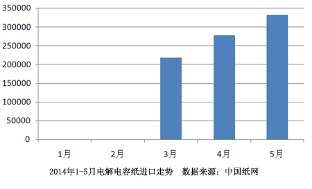 到今年,雖然電解紙反傾銷(xiāo)仍在繼續(xù),但進(jìn)口量并未得到有效遏制。據(jù)紙業(yè)網(wǎng)數(shù)據(jù)顯示,前5個(gè)月電解紙進(jìn)口量已經(jīng)達(dá)到1317.7噸,并呈增長(zhǎng)趨勢(shì)。