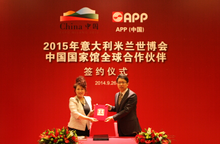 2014年9月26日 北京——今日,APP(中國(guó))宣布正式成為2015年米蘭世博會(huì)中國(guó)館全球合作伙伴,將攜手中國(guó)國(guó)家館在世博會(huì)前期推廣和活動(dòng)期間,積極向全球觀眾展示中國(guó)紙文化的深厚內(nèi)涵和近年來(lái)造紙業(yè)在可持續(xù)發(fā)展上取得的豐碩成果。在26日舉行的簽約儀式上,中國(guó)國(guó)際貿(mào)易促進(jìn)委員會(huì)展覽部副巡視員張亮及APP(中國(guó))副總裁翟京麗出席并致辭。張亮與翟京麗分別代表雙方簽署了合作協(xié)議。