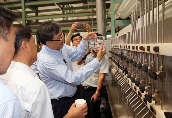 在城市中水回用車間,當(dāng)了解到這個項目可以有效回收利用城市生活污水處理廠的中水,每年可以節(jié)約1000多萬噸水資源時,王安德給予高度評價,認(rèn)為該項目除了節(jié)約大量淡水資源外,還減少了排污量,這也是未來的一個方向,有很強(qiáng)的示范引領(lǐng)意義。