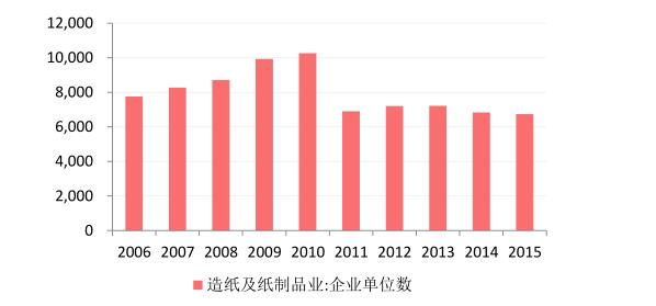 目前我國(guó)漿紙市體量在1.4萬(wàn)億以上,原紙市場(chǎng)在8000億以上,包裝用紙?jiān)?500億左右。除了包裝用紙外,文化用紙也占據(jù)造紙行業(yè)重要地位,2015年我國(guó)文化用紙生產(chǎn)量占總產(chǎn)量占比23.48%。2015年我國(guó)造紙行業(yè)的企業(yè)單位數(shù)有6737家,全國(guó)范圍內(nèi)排名前10的造紙企業(yè)產(chǎn)能占全國(guó)總產(chǎn)能的30%左右,前100位的紙企產(chǎn)能占全國(guó)總產(chǎn)能的60%左右。