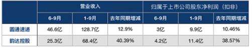 近日,圓通速遞和韻達(dá)控股相繼發(fā)布了2017年第三季度財(cái)務(wù)報(bào)告,兩家主要財(cái)務(wù)指標(biāo)如下,申通將于10月31日公布季報(bào)。