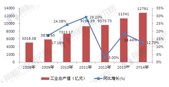 2008-2014年包裝行業工業總產值及增長率走勢(單位:億元,%) 與此同時,2008-2014年,我國包裝行業銷售收入逐年增加,2014年包裝行業實現銷售收入12140.07億元,為近年來的最大值,同比增長10.86%。 2008-2014年,包裝行業產成品則呈波動趨勢。2008-2009年逐年增加,2010年實現產成品290.15億元,同比下降7.84%;2011年實現產成品299.08億元,同比增長17.60%,為近年來的最大增幅;2012年實現產成品285.35億元,同比下降4.59%;2013年,實現產成品306.42億元,同比增長7.38%。2014年,實現產成品349.58億元,同比增長14.09%。 包裝行業前景可期 隨著我國商品經濟的繁榮與發展,人民生活質量的提高以及消費水平的提高,生活節奏的加快,消費者對微波食品、休閑食品、冷凍食品等速食品的需求量越來越大。這種趨勢將加速速凍食品、方便食品包裝的需求;與此同時,政府提出了農業產業化發展計劃,重點發展農副產品深加工,而農副產品深加工項目需要配套大量包裝機械和包裝材料;國家發展和改革委員會將食品加工和包裝機械列為食品工業發展的重點優先發展領域,這些都將給包裝行業的發展帶來廣闊的前景。 根據最近六年中國包裝行業的銷售收入的數值及其走勢,可大致估算未來幾年包裝行業的銷售收入,預計到2020年,中國包裝行業的銷售收入將突破1.94萬億元。