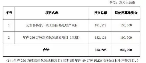 山鷹紙業募集不超過23億元投向湖北年產220萬噸高檔包裝紙板項目(三期) 山鷹紙業3月28日晚間披露可轉換債預案,本次擬發行可轉換公司債券募集資金總額不超過23億元(含23億元),投向湖北公安縣楊家廠鎮工業園熱電聯產項目和年產220萬噸高檔包裝紙板項目(三期)。