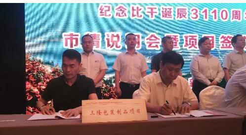 2018年5月17日,河南省衛輝市委、市政府在開元名都大酒店舉行市情說明會暨工業項目簽約儀式。三隆包裝公司董事長謝紅衛與政府代表簽署合作協議,正式進軍河南。