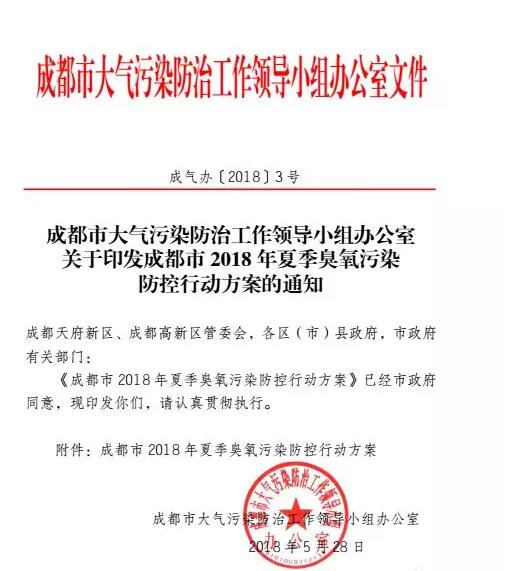 四川省成都市: 成都市印發《成都市2018年夏季臭氧污染防控行動方案》,方案要求6月15日前,各區(市)縣對全市石油化工、汽車制造、機械加工裝備制造、家具制造、人造板制造、涂料、制鞋、印刷包裝、制藥等重點行業企業的VOCs治理情況進行全面梳理排查,對無法實現穩定達標排放的企業,嚴格實施相關生產工藝或裝置停產整改。6月16日起,由市環保督察辦聯合相關市級部門對涉及VOCs排放企業開展督查。凡是督查中發現未按規定使用治污設施或排放不達標的企業,一律依法實施停產整改,并納入信用考核。 需在6月1日至8月31日進行涉及VOCs排放工序作業的工地,應于6月1日前報市政府批準,并在每日10:00-18:00不得開展涉及VOCs排放作業工序作業(應急施工工程除外),同時使用VOCs含量低的涂料(如水性涂料等)。6月15日起,由市環保督察辦聯合相關市級部門開展督查,對工地名單內違規施工工地,一律停工整改,情節嚴重的,移除工地名單;對未在工地名單內違規施工工地,一律由行業主管部門依法查處,并納入信用考核。7月1日起,由市環保督察辦聯合市交委開展專項督察。