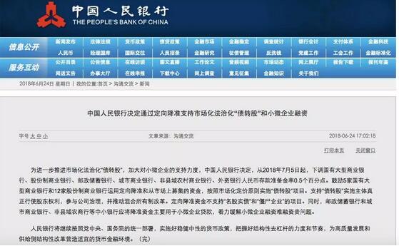 央行定向降準,釋放7000億流動性!誰將受益? 6月24日下午5點,期待中的重大利好終于來了:央行宣布“定向降準”! 據(jù)央行網(wǎng)站消息,為進一步推進市場化法治化“債轉(zhuǎn)股”,加大對小微企業(yè)的支持力度,中國人民銀行決定:2018年7月5日起,下調(diào)國有大型商業(yè)銀行、股份制商業(yè)銀行、郵政儲蓄銀行、城市商業(yè)銀行、非縣域農(nóng)村商業(yè)銀行、外資銀行人民幣存款準備金率0.5個百分點。